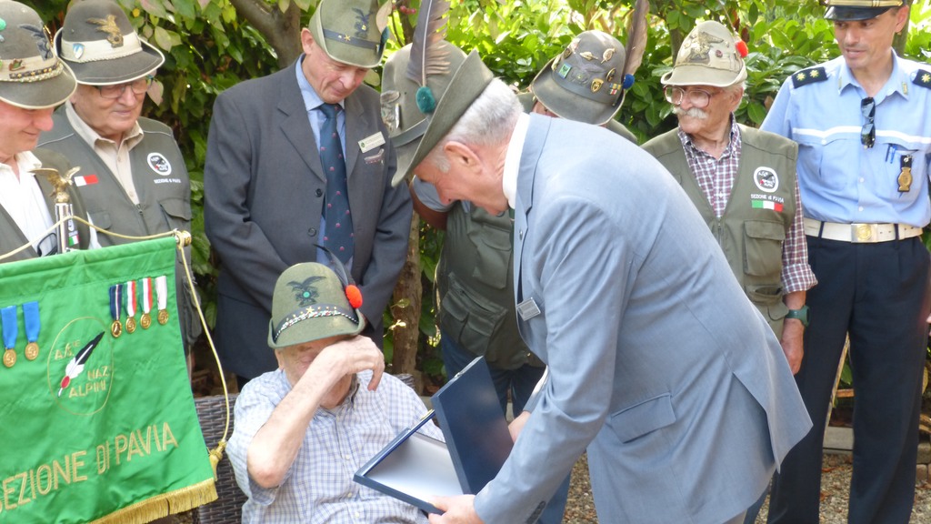 A margine della festa del Gruppo Alpini Barbianello, gli Alpini di Voghera hanno accompagnato il Presidente Gatti a consegnare una targa di riconoscimento ad un reduce alpino locale.